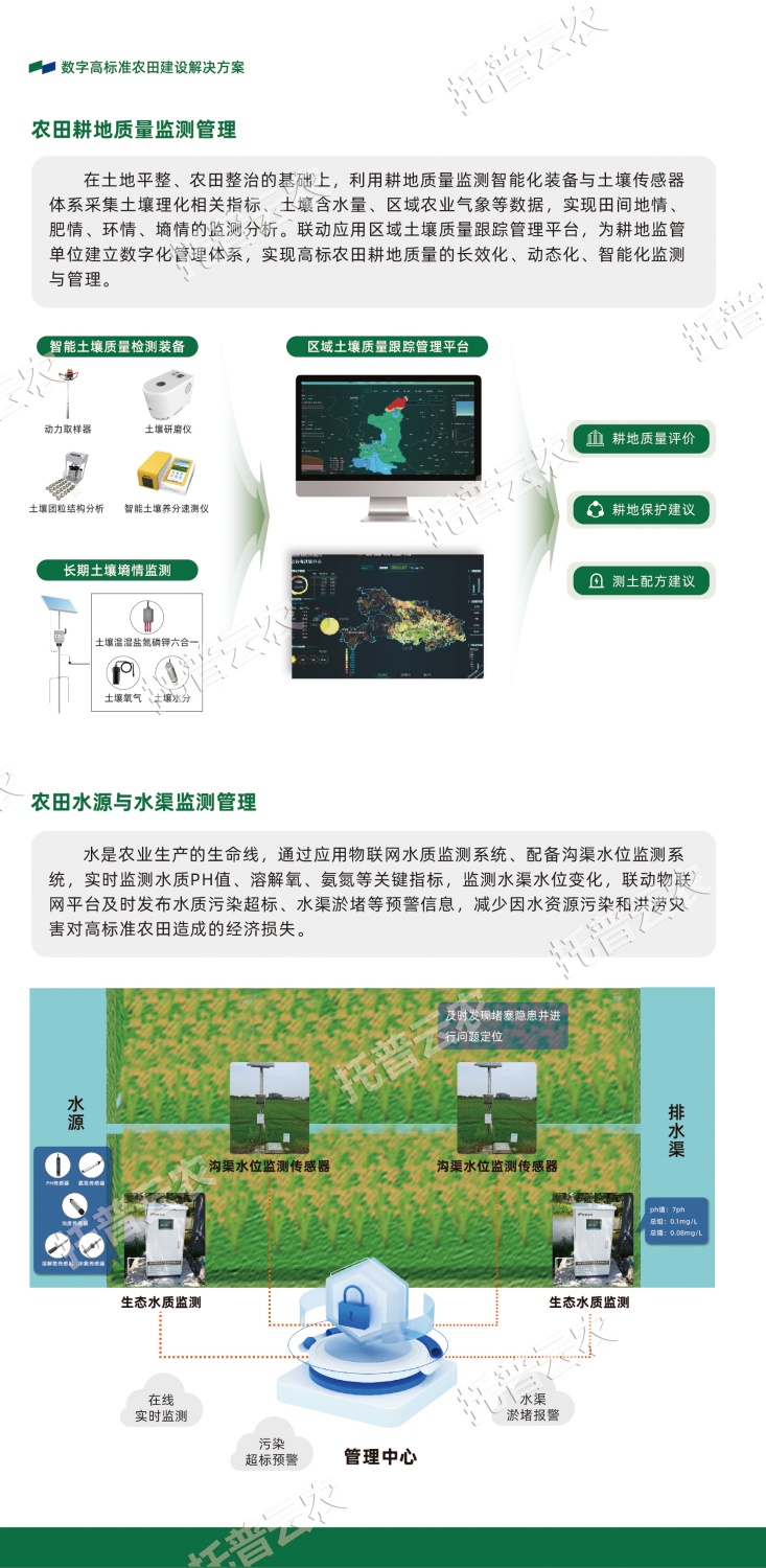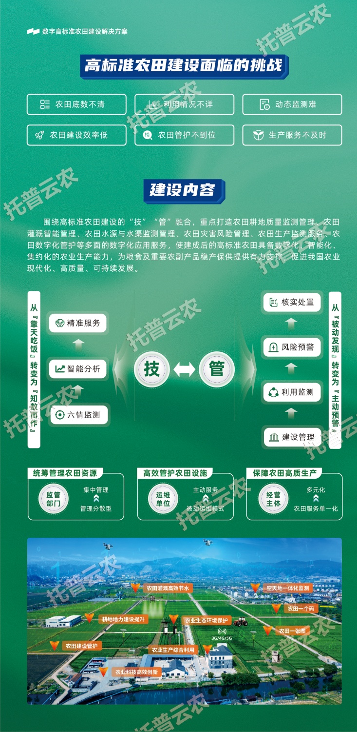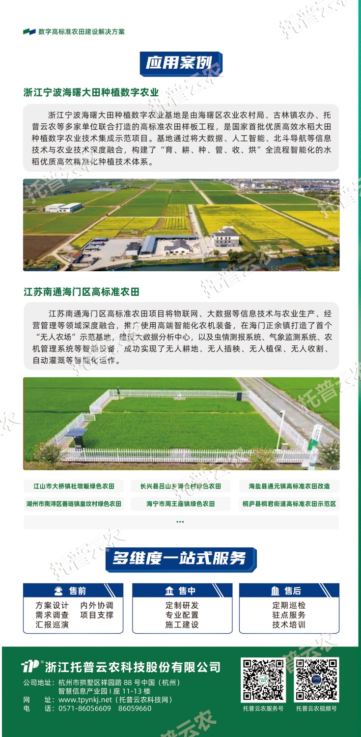 作為中國(guó)智慧農(nóng)業(yè)領(lǐng)域的先行者,浙江托普云農(nóng)科技股份有限公司(股票簡(jiǎn)稱:托普云農(nóng),股票代碼:301556)始終立于行業(yè)一線,深入探索數(shù)智技術(shù)與農(nóng)業(yè)生產(chǎn)的融合應(yīng)用,以高標(biāo)準(zhǔn)農(nóng)田建設(shè)的“技”“管”融合為理念,以關(guān)鍵智能化場(chǎng)景打造為抓手,構(gòu)建數(shù)字化、智能化、集約化的高標(biāo)準(zhǔn)農(nóng)田(綠色農(nóng)田)建設(shè)解決方案。
